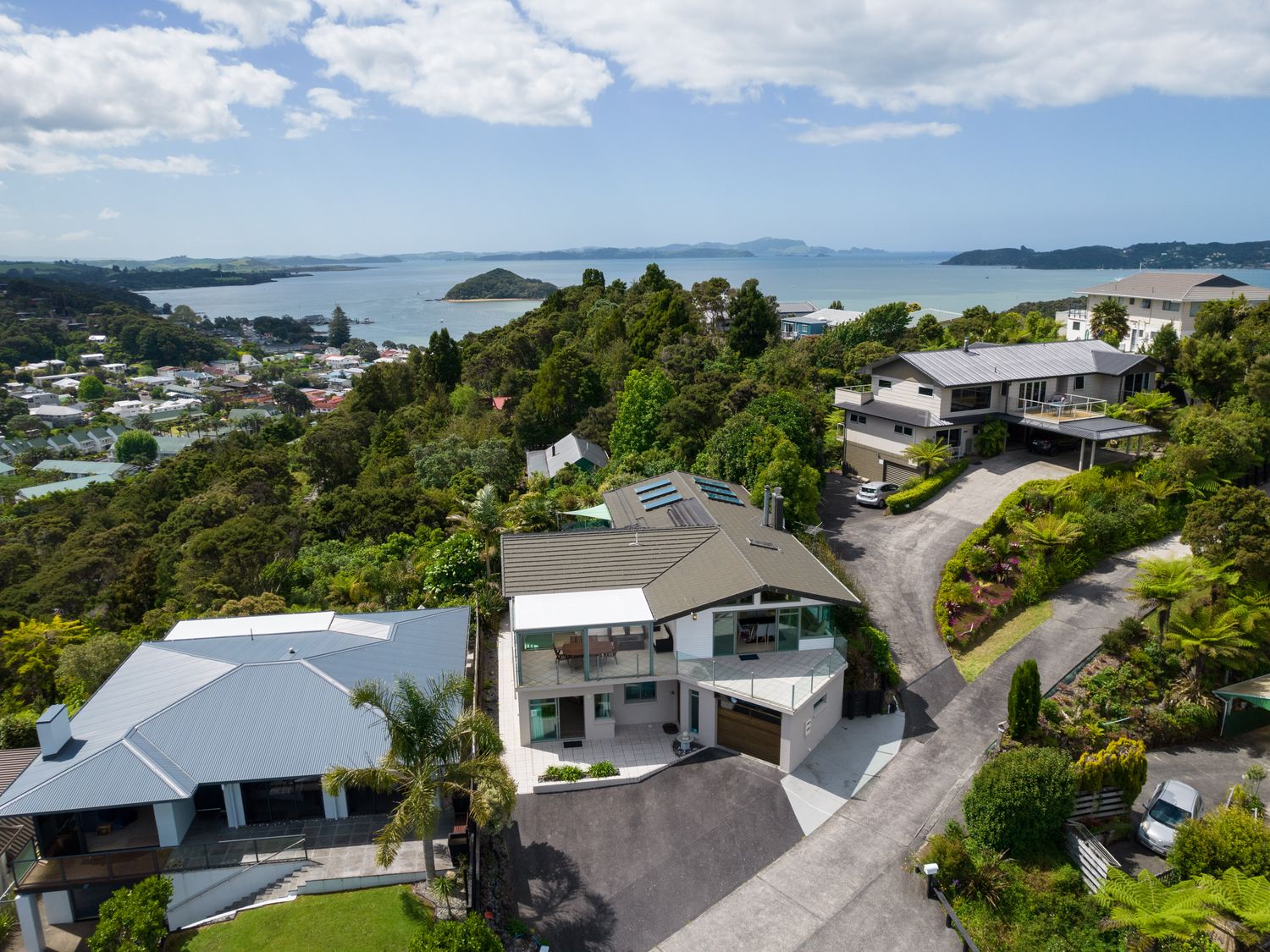 Swallows Nest is an elegant holiday home right in the heart of Bay of Islands. Boasting endless views across Paihia, Several outdoor areas to enjoy, this upmarket holiday home is waiting to welcome you! Open up the sliding doors to be transported to another world. Watch the boats coming and going all the way out to Russell, and marvel at the birdsong coming from the native bush surrounding you. Get ready to soak up the sun, or settle yourself into one of the three super comfortable living areas to make the most of the unlimited Wifi and Smart TVs. With a heat pump and fire place, this Paihia holiday home has been thoughtfully prepared to ensure an enjoyable stay all year round. Swallows Nest is ideally set up to cater for your group. You can spread out across three large bedrooms upstairs, and a self contained dwelling with king size bed on the first floor. Follow the sun and enjoy the various outdoor entertaining areas or snuggle up next to the fire. Wander into town and take your pick of excellent restaurants along the waterfront. A 10-minute walk or a minute drive will land you in the heart of Paihia. Here you can wander into the info centre to book a day of adventure on the water, enjoy the range of fantastic cafes and restaurants, and swim in the sparkling sea. Another five minutes of driving will take you to the unmissable Waitangi Treaty Grounds and a world-class golf course. When you’re ready, you can amble back to Swallows Nest to pour a wine and marvel at the sunset over the bay. Enjoy the perfect balance of tranquillity and adventure here at Swallows Nest in Paihia!